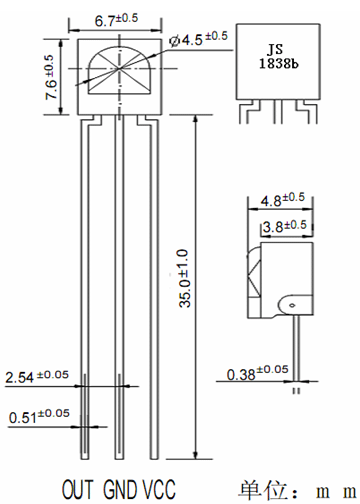 JS1838b-33 高灵敏度,抗光、抗电磁干扰能力强红外线接收头