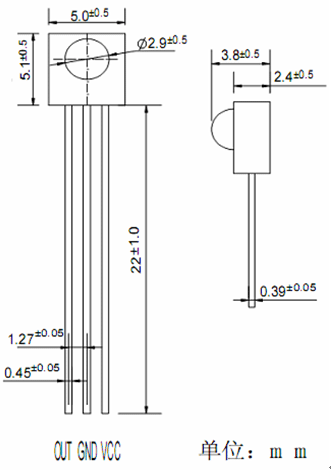 5.光电参数(T=25℃ Vcc=5v f0=38KHZ):